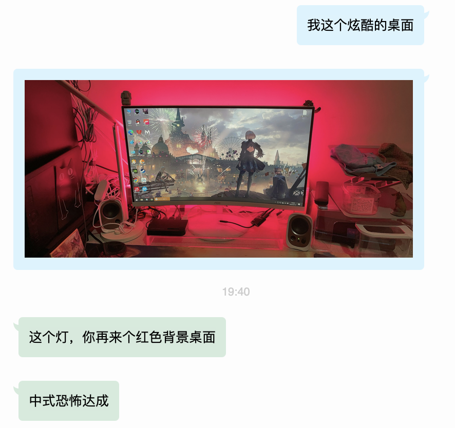 这几天因为疫情,淘宝买的东西基本上都停在京外不让进,不过幸好卷纸和yeelight的灯带先到了,剩余的屏幕挂灯估计要15号左右才能到,先把LED灯带装在了显示屏后背,终于,我的写字台也加入了炫彩光污染的大军(。