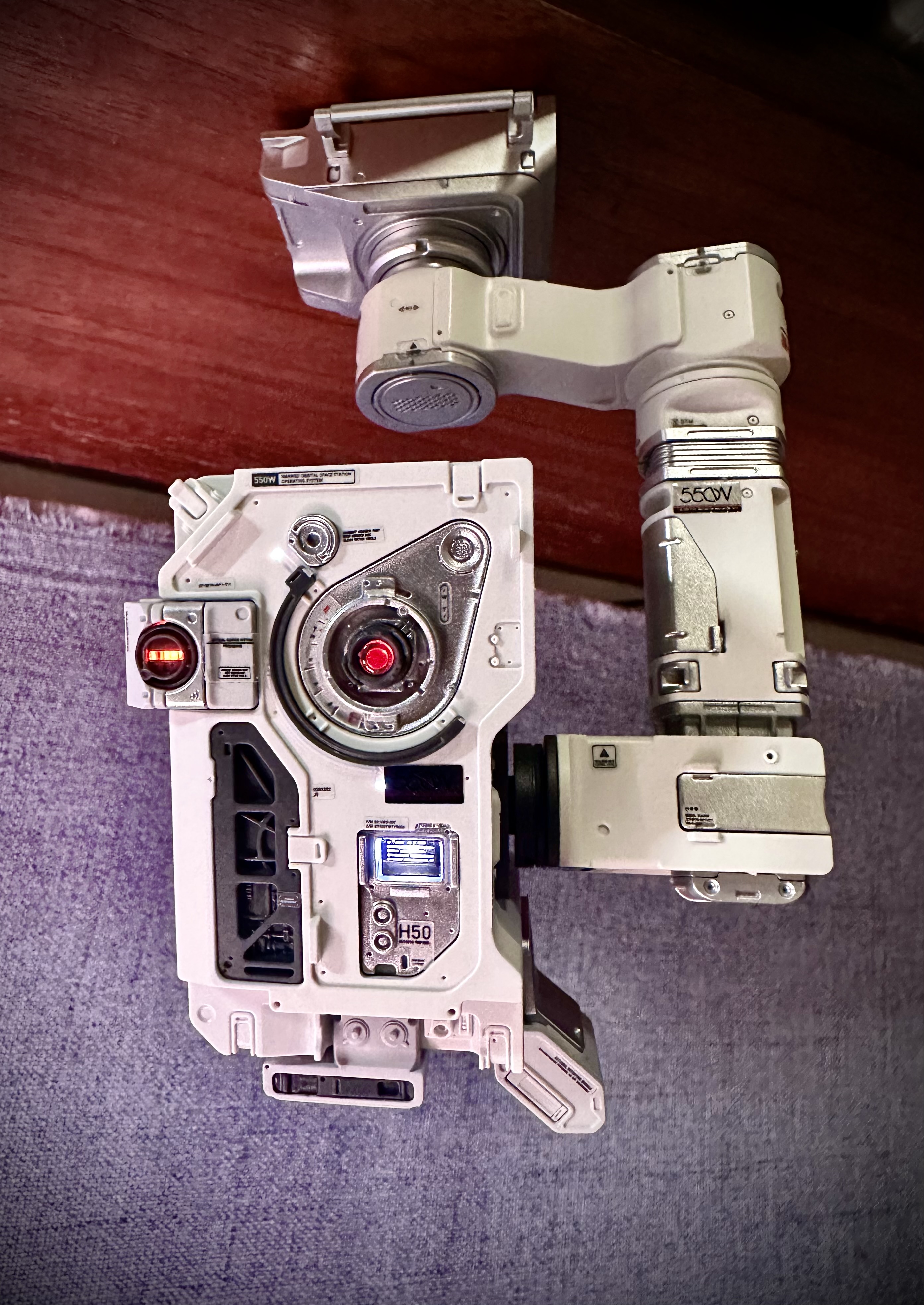 零件的细节丰富,机械臂一些零件对齐的方法也都细致得标注出来了,确实非常用心,moss的镜头组也非常夸张,几层嵌套,做出了摄像头那种细致逼真的凹凸感,红色灯亮起的一瞬间,仿佛自带bgm。